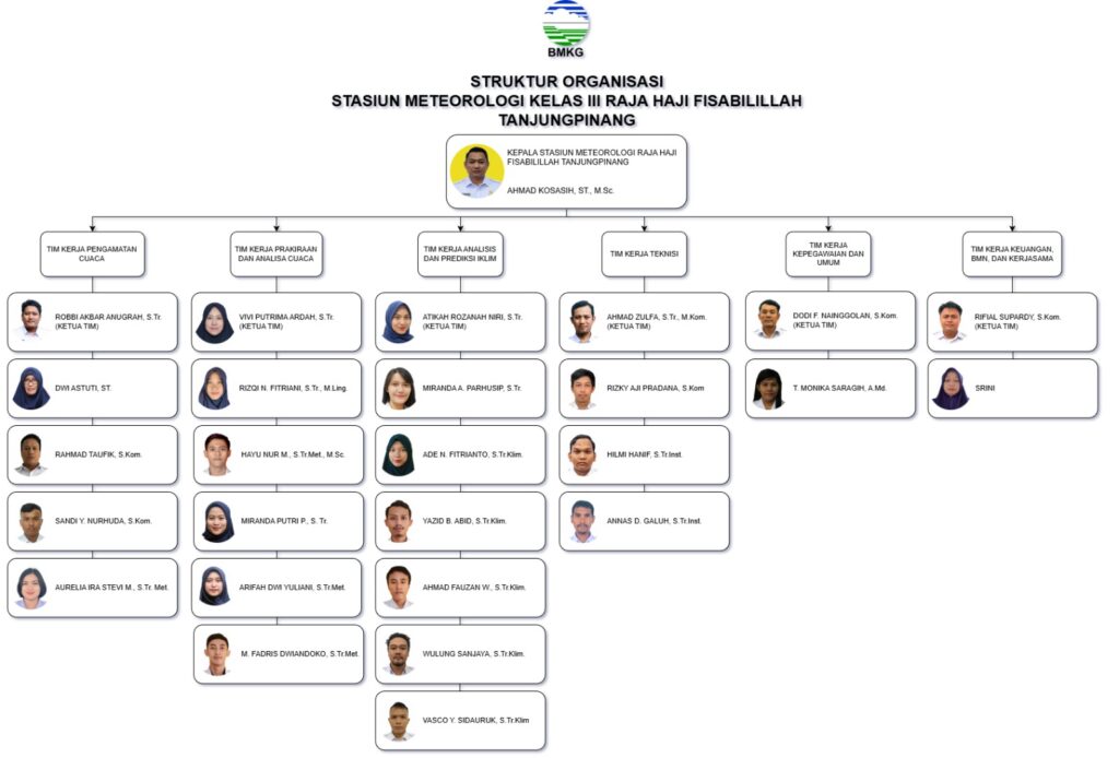 Stasiun Meteorologi Kelas III Raja Haji Fisabilillah Tanjungpinang merupakan salah satu Unit Pelaksana Teknis (UPT) BMKG di lingkungan Provinsi Kepulauan Riau. Sebagai UPT BMKG, kami melaksanakan tugas pemerintahan di bidang Meteorologi, Klimatologi, Kualitas Udara dan Geofisika sesuai dengan ketentuan perundang-undangan yang berlaku.